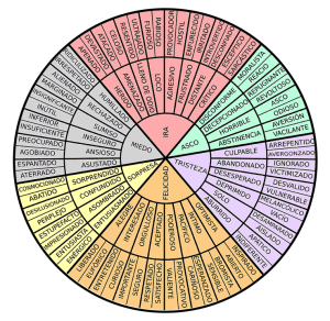Puedes observar en la foto «La rueda de las emociones» todo el abanico de emociones primarias y sus variantes. Hay veces que sentimos unas sensaciones que no sabemos identificarlas.